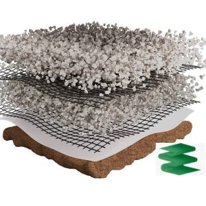 Соединённая сетка производится из полипропилена и стекловолокна. Стержни или полосы полимерных материалов раскладываются под углом 900, а на месте их переплетения скрепляются при помощи сварки или иным способом.